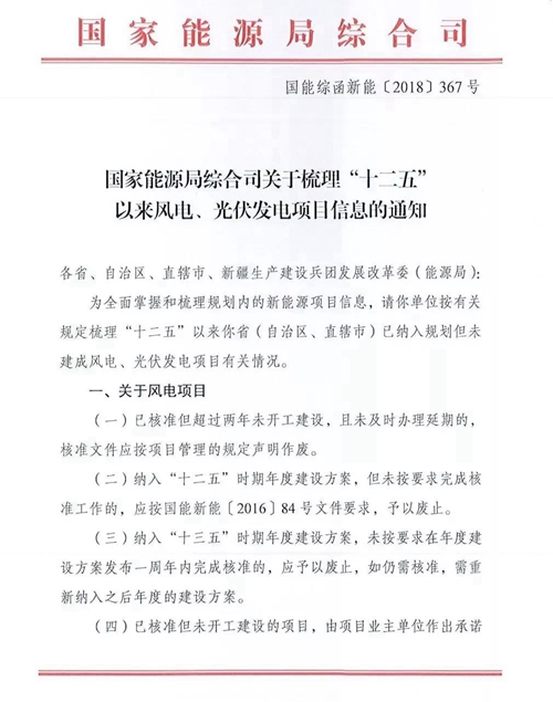 近日,國家能源局綜合司下發(fā)了關(guān)于梳理“十二五”以來風(fēng)電、光伏發(fā)電項(xiàng)目信息的通知,通知原文如下: